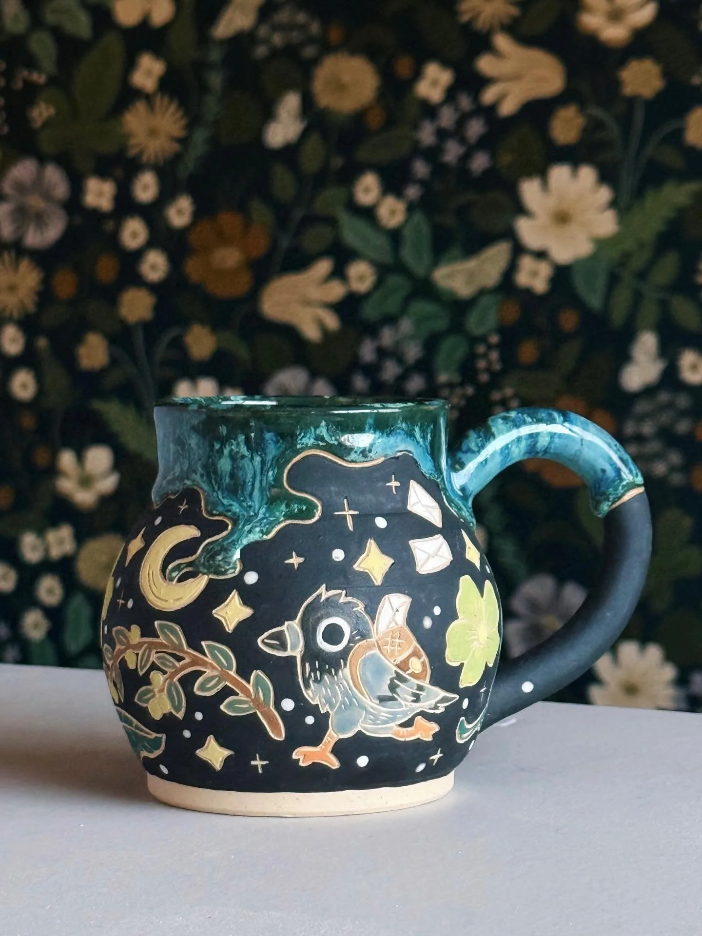 No two of my designs are alike; an intentional choice. I want anyone who receives one of my creations to feel like they’ve been gifted a bespoke treasure that cannot and will not be replicated again. This goal is helped along by the magical and unpredictable nature of high-fire ceramics. We can send the same combinations of glazes through the kiln and they come out different every single time - a charming surprise that brings as much joy to me as the maker as it does to folks who purchase my pieces. We all deserve to feel a little special, and I delight in the idea that my fantastical & functional wares can represent that bright spot in someone’s day.